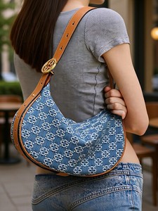 小众新款美式丹宁牛仔水洗腋下帆布包休闲百搭斜挎包半月包月亮包