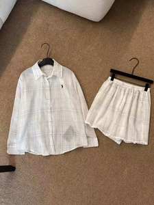高版本~早秋新款长袖衬衫短裤套装亚麻天丝防晒衬衣短裤两件套女