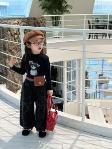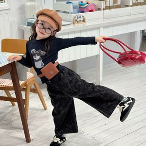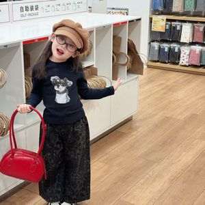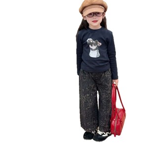 女童2025秋季新款印花长袖豹纹裤韩版卡通风套装