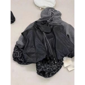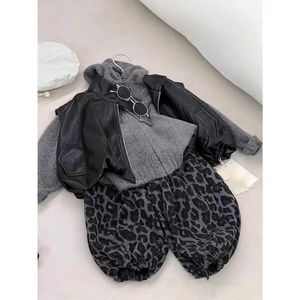 儿童套装2025秋款新品韩版男女童帅气皮马甲连帽毛衣豹纹裤三件套