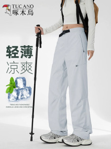 啄木鸟工装休闲裤女款新款夏季户外防风防水冲锋裤小个子登山裤男