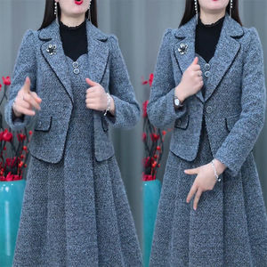 长袖连衣裙套装女2025春秋新款小香风外套显瘦时尚两件套裙子
