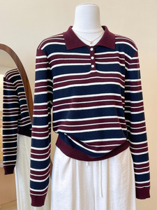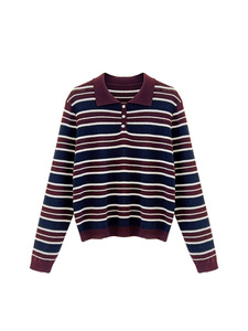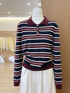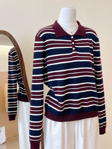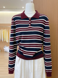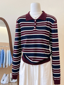 自留款推荐~复古撞色条纹POLO领针织衫女秋季款时尚气质显瘦上衣