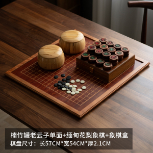 楠竹罐防玉单面+缅甸花梨象棋+盒 要防玉双面