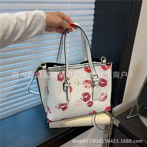外贸女包时尚手提包包2025新款小众ins印花潮流大容量托特斜挎包