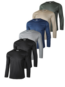 【跨境专供】6件装 男士休闲运动长袖健身衣速干圆领跑步纯色T恤