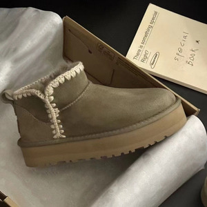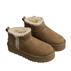河南桑坡羊皮毛一体雪地靴厚底迷你毛线边秋冬加厚增高时尚短靴女