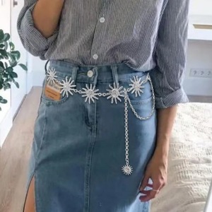 欧美波西米亚腰链女配饰太阳花流苏异域风连衣裙金属腰带链条腰链
