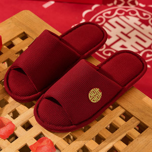 买一送一夏季拖鞋结婚喜庆红色一对情侣婚庆婚礼陪嫁室内防滑轻便
