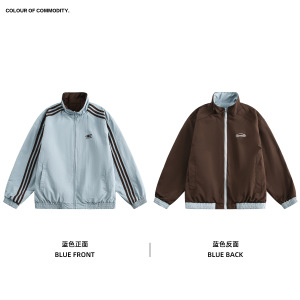 「CHANT'2nd」美式复古两面穿外套女春秋款运动休闲三条杠棒球服