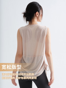 瑜伽上衣女夏季薄款大码圆领背心罩衫无袖T恤户外运动跑步健身服
