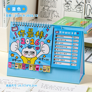 2026年多功能打卡计划台历创意桌面摆件学生自律打卡日历记事本
