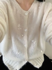 25秋季韩系圆领高级感纯色手工刺绣亮片时尚气质羊驼绒女针织开衫