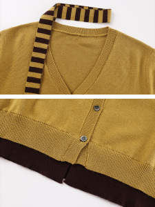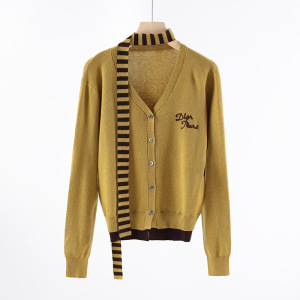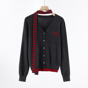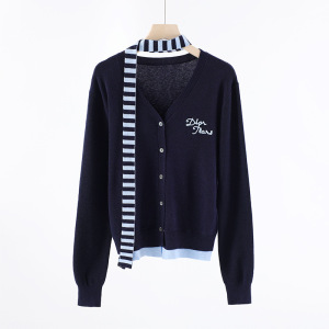 绣花飘带超细绵羊毛针织开衫女显瘦拼接V领长袖毛衣薄外套上衣女