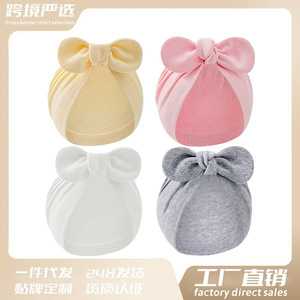 跨境欧美亚马逊新生儿婴儿帽蝴蝶结棉质印度帽保暖0-2岁宝宝胎帽