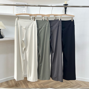 0828x9~日常休闲舒适百搭宽松显瘦反光印花女士高腰直筒休闲长裤