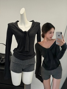2025新品浅卡其/炭灰 针织打底衫+外搭披肩套装女秋季上衣两件套