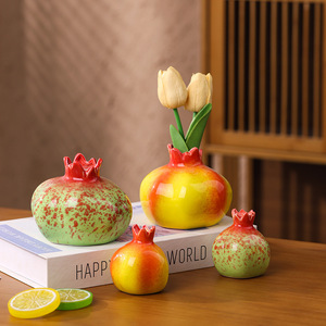 橘子陶瓷小花瓶水果造型桌面摆件客厅插花水培植物绿萝桌面装饰