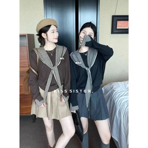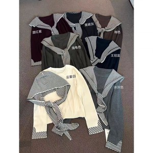 6097【上衣两件套】小李简约针织上衣+连帽披肩-不退换