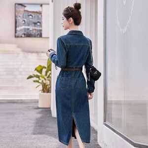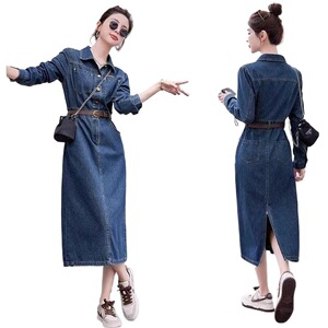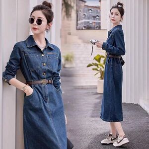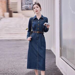 牛仔连衣裙女装2025复古新款收腰显瘦长袖大码气质中长款裙子