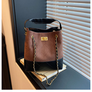 2025新款单肩包棱格撞色复古磨砂链条单肩腋下包手提斜挎托特包包