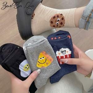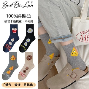 纯棉袜子女可爱卡通曲奇荷包蛋奶酪中筒袜子ins潮学院风秋冬长袜