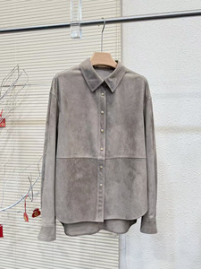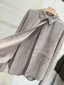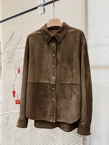 561真皮皮衣2025初秋新款 山羊皮反绒简约款长袖单排扣衬衫外套女