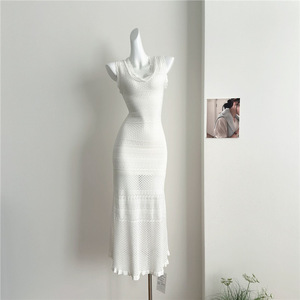 法式高级镂空无袖背心裙子小香度假风遮肉显瘦冰丝针织包臀连衣裙