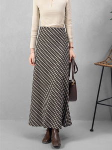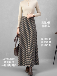 云长 斜纹呢感a字包臀裙女秋季新款复古高腰半身裙磨毛通勤女裙
