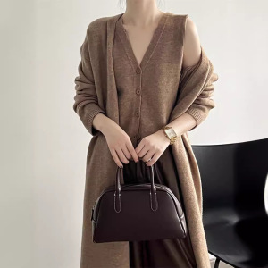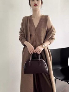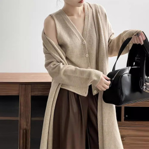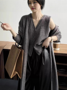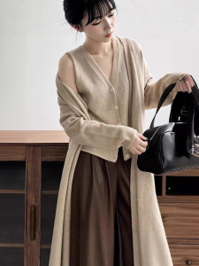 复古中长款毛衣开衫外套套装女秋2025新款宽松显瘦马甲背心两件套
