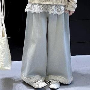 女童套装2025秋季新款中大童韩系花边打底衫针织背心牛仔裤三件套