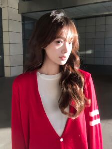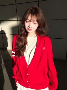 miu系千金风假两件针织开衫女秋季新款红色毛衣外套修身慵懒上衣
