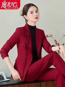 主持气质名媛时尚套装秋冬季两件套穿搭女装一整套高级感红色2603