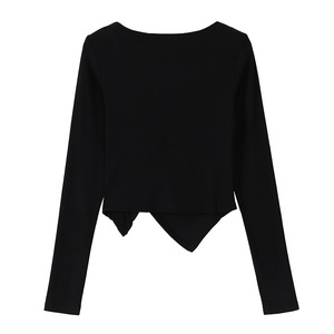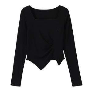 芭蕾风方领针织上衣女2025秋冬长袖设计感修身针织打底衫