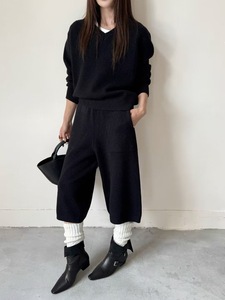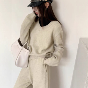简约高级感针织套装女秋冬新款时尚休闲V领套头上衣+七分裤两件套