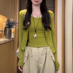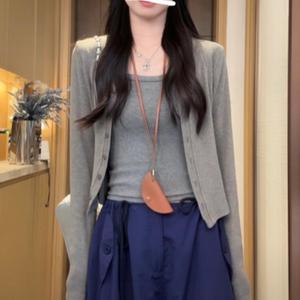 早秋高密棉防晒慵懒风开衫长袖短外套高弹2025早秋新款其他圆领