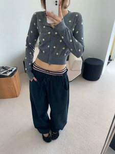 “原厂100%绵羊毛毛纱”进口机单层提花波点针织开衫收腰长袖上衣