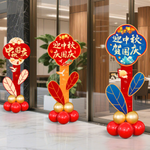 国庆节装饰路引立牌商场展厅迎宾牌kt板中秋节气球布置拍照小道具