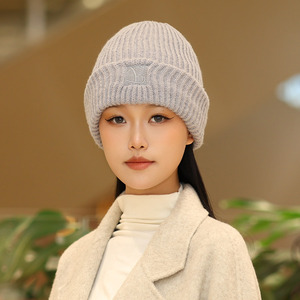 秋冬季新款毛绒保暖毛线帽护耳堆堆帽显脸小针织冷帽女大头围帽子
