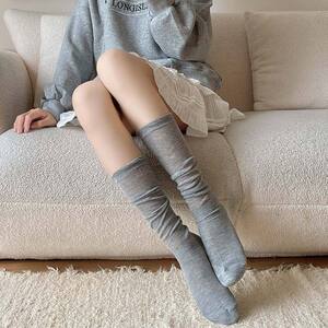 早秋薄款纯色堆堆袜子女棉日系jk泡泡口小腿袜显瘦百搭诸暨袜子