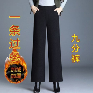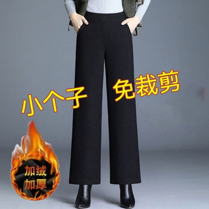 秋冬小个子高腰宽松直筒裤长裤垂坠感西装裤子加绒加厚阔腿九分裤