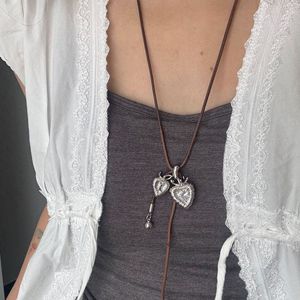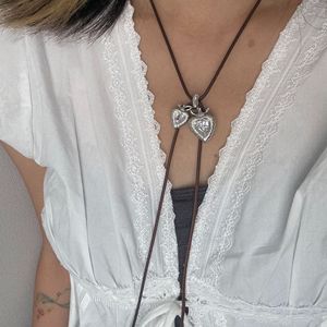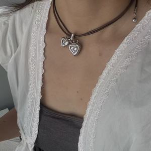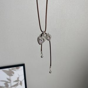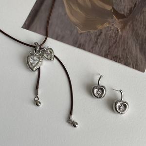 韩版个性网红同款双心抽拉项链小众锆石微镶樱桃耳钉小众毛衣链女
