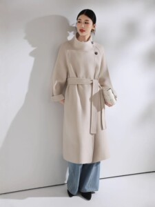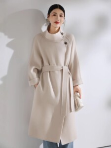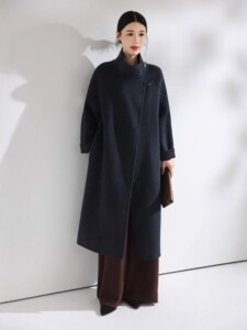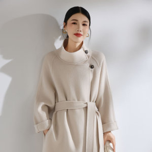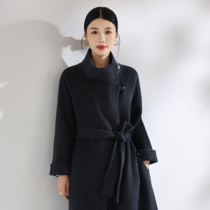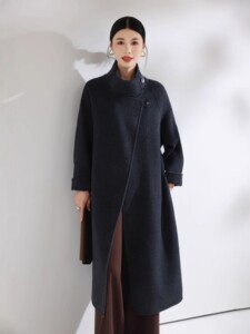 秋冬新款中式双面呢羊毛大衣立领加长款宽松毛呢外套女国风气质