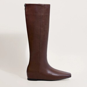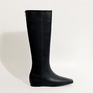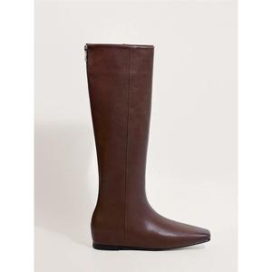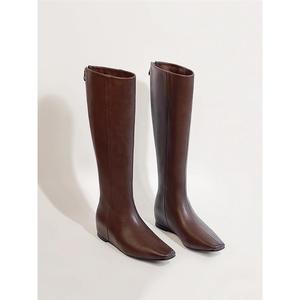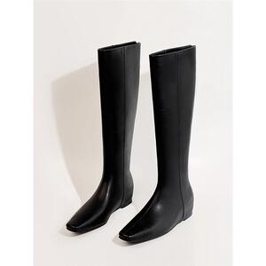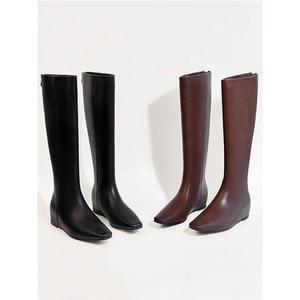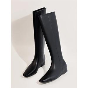 极简风内增高长靴女2024真皮方头气质瘦瘦靴后拉链骑士靴直筒靴潮