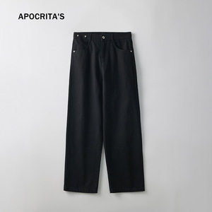 APO女装|跨境纯棉休闲裤女秋季高级感宽松直筒慵懒显瘦半松紧长裤
