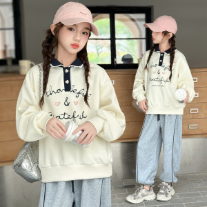 女童卫衣套装春秋2025新款洋气秋装polo领上衣中大童休闲裤两件套