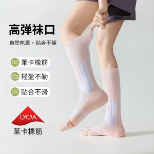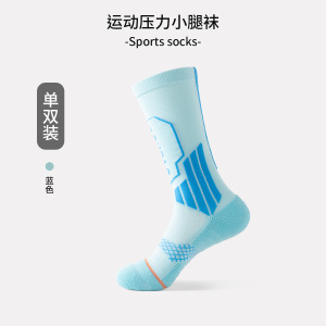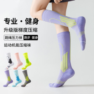专业运动袜压力小腿袜骑行跑步跳绳健身男女薄款毛巾底长筒过膝袜