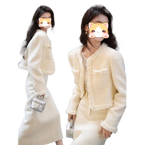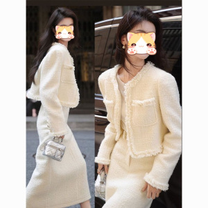 富家千金大小姐气质小香风两件套装裙女秋冬圆领长袖短外套感