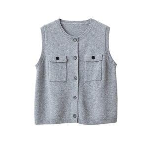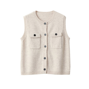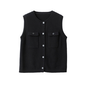 【奶油黄】全羊毛女小香口袋圆领廓形针织马甲开衫女显瘦无袖背心
