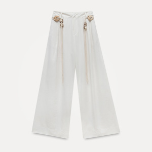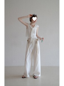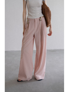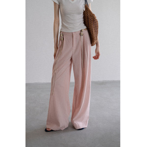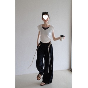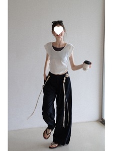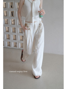 EGGKA白色凉感设计松弛感休闲裤女夏季高腰宽松直筒显瘦阔腿长裤